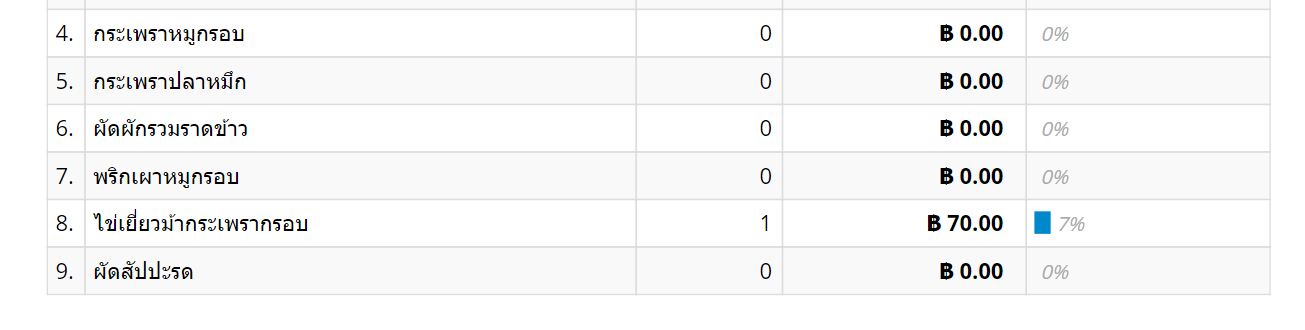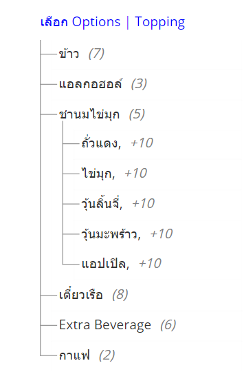 หมายเลข 8. จะรายงานยอดขาย 70บาท (โดยรวมราคา options/ toppings แล้ว)